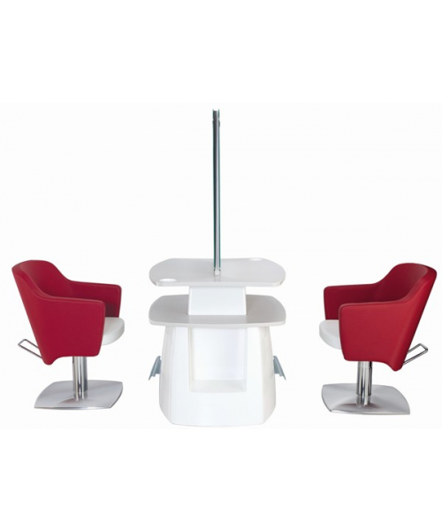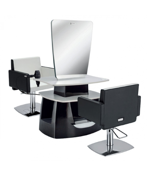 Зеркало парикмахерское "STYLO 2P" двустороннее - зеркало с артикулом С-60002502 оснащено тумбой с ламинированными столешницей и полкой, а также металлическими подставками под ноги. Каркас тумбы выполнен в пластике. Крепление к стене.