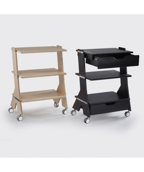 Столик оснащен колесами для легкого перемещения.